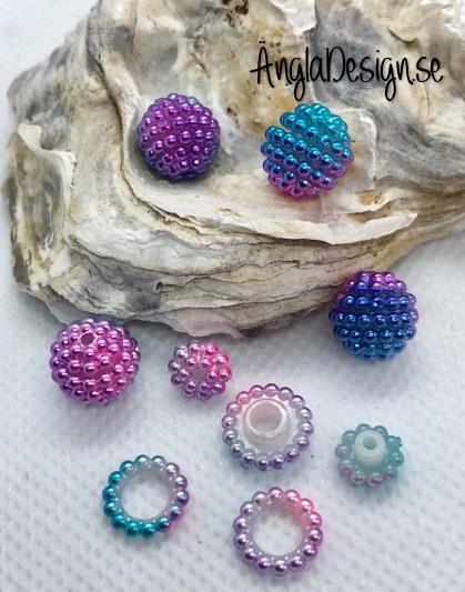 Bär pärla/berry beads blå/turkos/rosa/lila/vit 10mm acryl, 5-pack